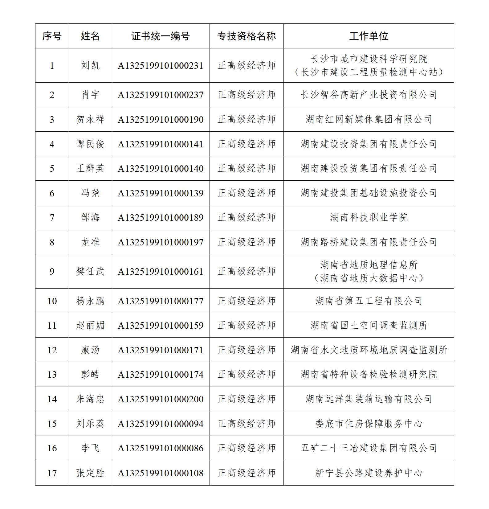 湘工经职改审〔2026〕4号各有关单位职称改革工作领导小组:经省工程系列高级专业技术职称评审委员会2025年11月16日评审通过,并经省人力资源和社会保障厅备案(湘人社职称〔2025〕568号),同意确认卿贤程等1373名同志工程系列高级专业技术职称(名单附后),其职称确认时间为2025年11月25...