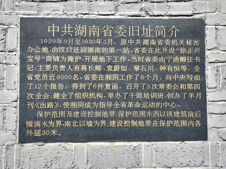 中共湖南省委旧址位于湘阴县文星镇三井头社区东正街10号。1929年9月至1930年5月,原中共地下湖南省委机关秘密办公地,省委由汉口迁回湖南的第一站。省委机关租用该栋房屋,开设“徐正兴宝号”商铺,下层饭馆,上层旅社,省委机关以此为掩护,开展地下工作。