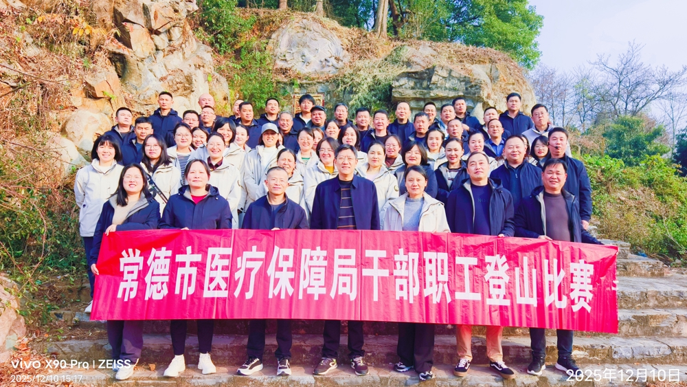 为丰富干部职工文体生活,营造积极健康、团结向上的工作氛围,2025年12月10日,常德市医疗保障局工会组织全体干部职工前往太阳山,开展登山活动。干部职工合影全体干部职工统一从太阳山樱花楼出发,途中三五成群,或相互鼓励、畅谈交流,或你追我赶、奋力前行。约两小时后,队伍陆续成功登顶常德电视调频转播台。极...