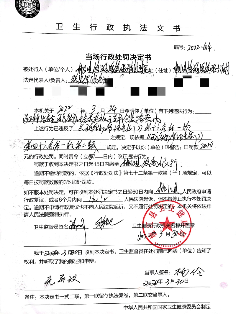 2024年12月12日,我局向当事人送达了文书编号为(桃)文综罚告字〔2024〕f-000008号的《行政处罚事先告知书》,告知了拟做出的行政处罚的事实、理由和依据,告知了当事人陈述和申辩的权利。截至2024年12月19日,当事人在规定的期限内未提出陈述、申辩,视为放弃陈...