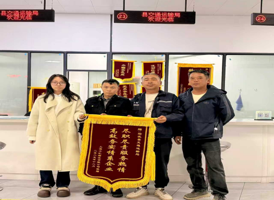近日,临武县政务服务大厅内上演了暖心一幕——上海平仁物流有限公司代表专程送来一面印有“尽职尽责服务热情高效务实情系企业”的锦旗,对交通运输局在办理三类大件运输通行证过程中展现出的高效、贴心服务表示诚挚感谢。2025年12月8日,上海平仁物流有限公司因业务前来办理三类大件运输通行证。按相关规定,法定办...