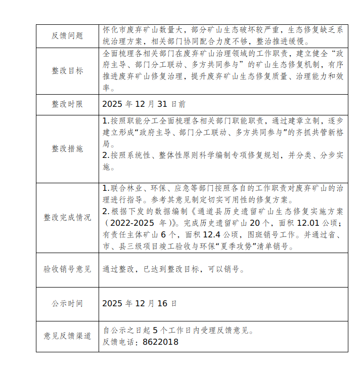 2024年第二轮省级生态环境保护督察报告整改问题整改验收销号公示表反馈问题生态优先绿色发展理念树得不够牢固,“等靠”思想还存在。一些地方和部门过度强调客观条件,存在观望心理、懈怠行为,导致工作进展缓慢。如按照怀化市工作部署,2025年全市垃圾资源化利用率应不低于60%。督察发现,2023年全市垃圾资...