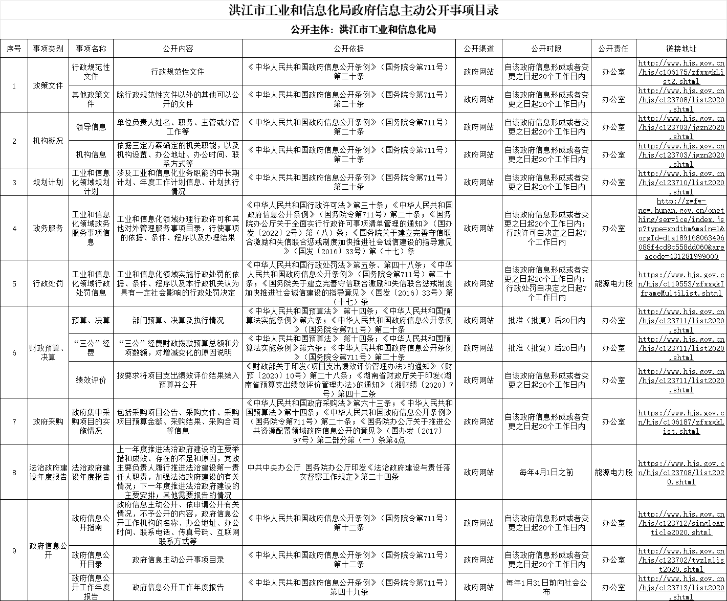 序号事项类别事项名称公开内容公开依据公开渠道公开时限公开责任链接地址1政策文件行政规范性文件行政规范性文件《中华人民共和国政府信息公开条例》(国务院令第711号)第二十条政府网站自该政府信息形成或者变更之日起20个工作日内起草股室和相关责任股室http://www.zhongfang.gov.cn/...