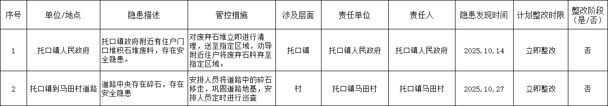 序号发现时间问题隐患来源问题隐患简述行业领域整改单位及责任人督办单位及责任人整改时限整改落实情况销号情况及时间备 注12025-8-3检查发现富团村孤寡老人等群体,对消防意识还未到位消防领域富团村村民委员会责任人:龙现香沅河镇人民政府责任人:曾湘锋2025-8-3现场讲解已销号2025-8...