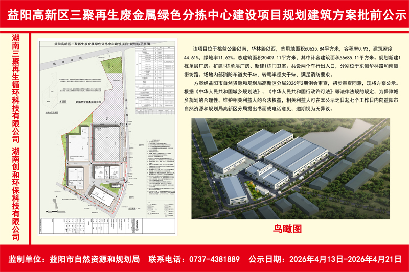 附件:益阳高新区三聚再生废金属绿色分拣中心建设项目规划建筑方案批前公示.rar