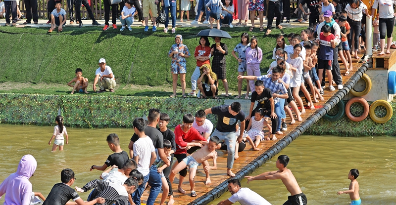 8月16日,新田县龙家大院古村,游客在休闲游玩。连日来,龙家大院景区严格落实疫情防控措施,对游客有序开放。刘贵雄摄