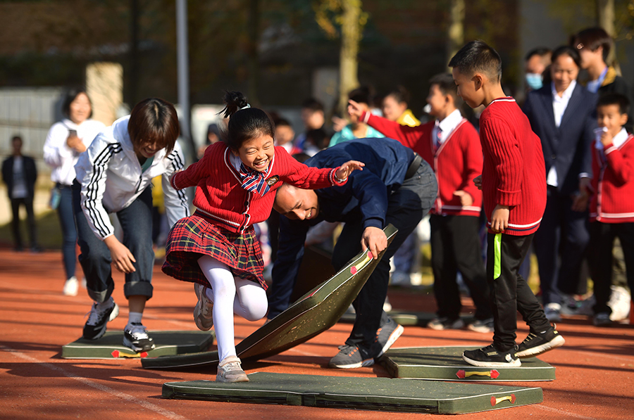 11月11日,长沙师范附属创远小学,学生和家长在进行趣味运动。当天,该校开展“亲子运动会·健康筑梦想”活动,促进亲子交流,传承体育精神。湖南日报记者唐俊通讯员张佳纯摄影报道
