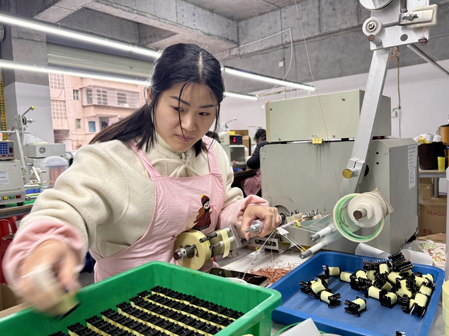 3月22日,通道侗族自治县淂鑫苑小区,工人在帮扶车间忙碌。今年以来,该县通过“就业春风行动”将岗位送到群众家门口,帮助居民实现就近就业。陈俊宇摄