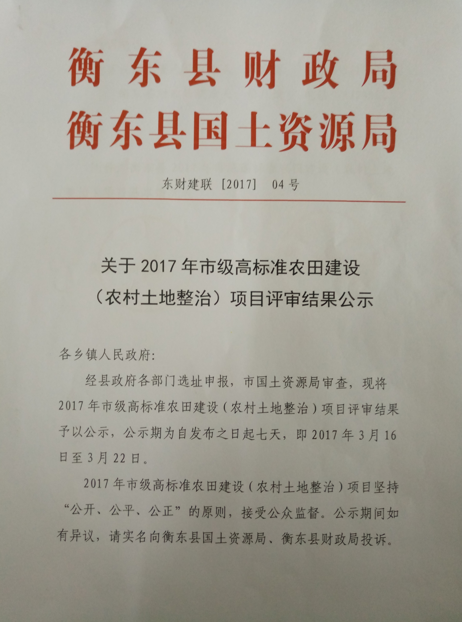 关于衡东县杨桥镇东烟村土地整治项目实施意见