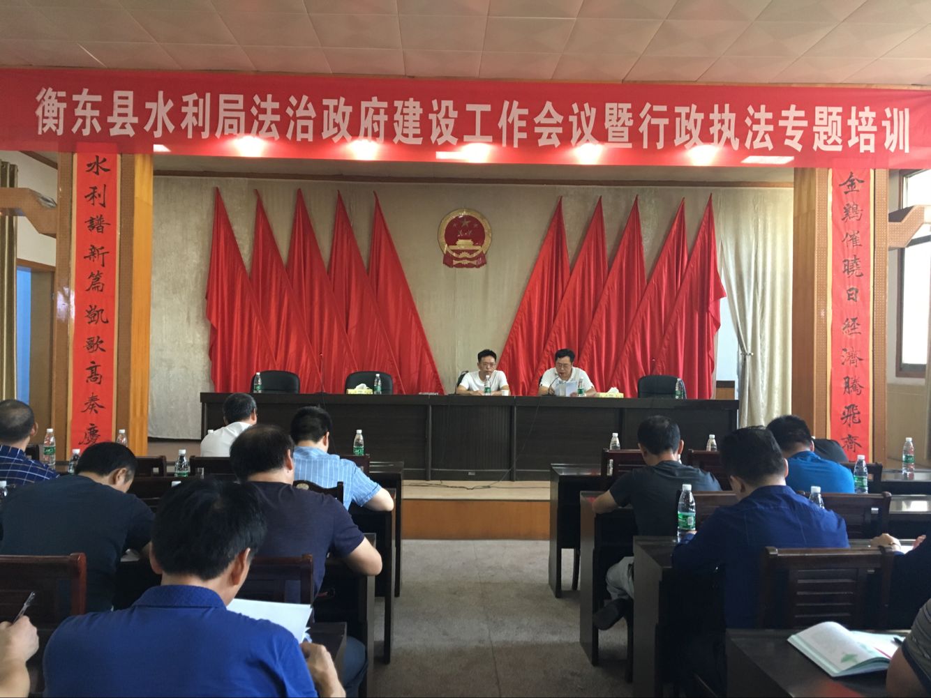 这次执法培训邀请了县法制办主任赵艳刚同志和副主任董兴国同志两位领导对机关股室、下属单位党政负责人和水政监察执法大队共计60多人进行了授课。授课内容包括依法行政、行政执法三项制度改革、行政强制法讲义等内容。