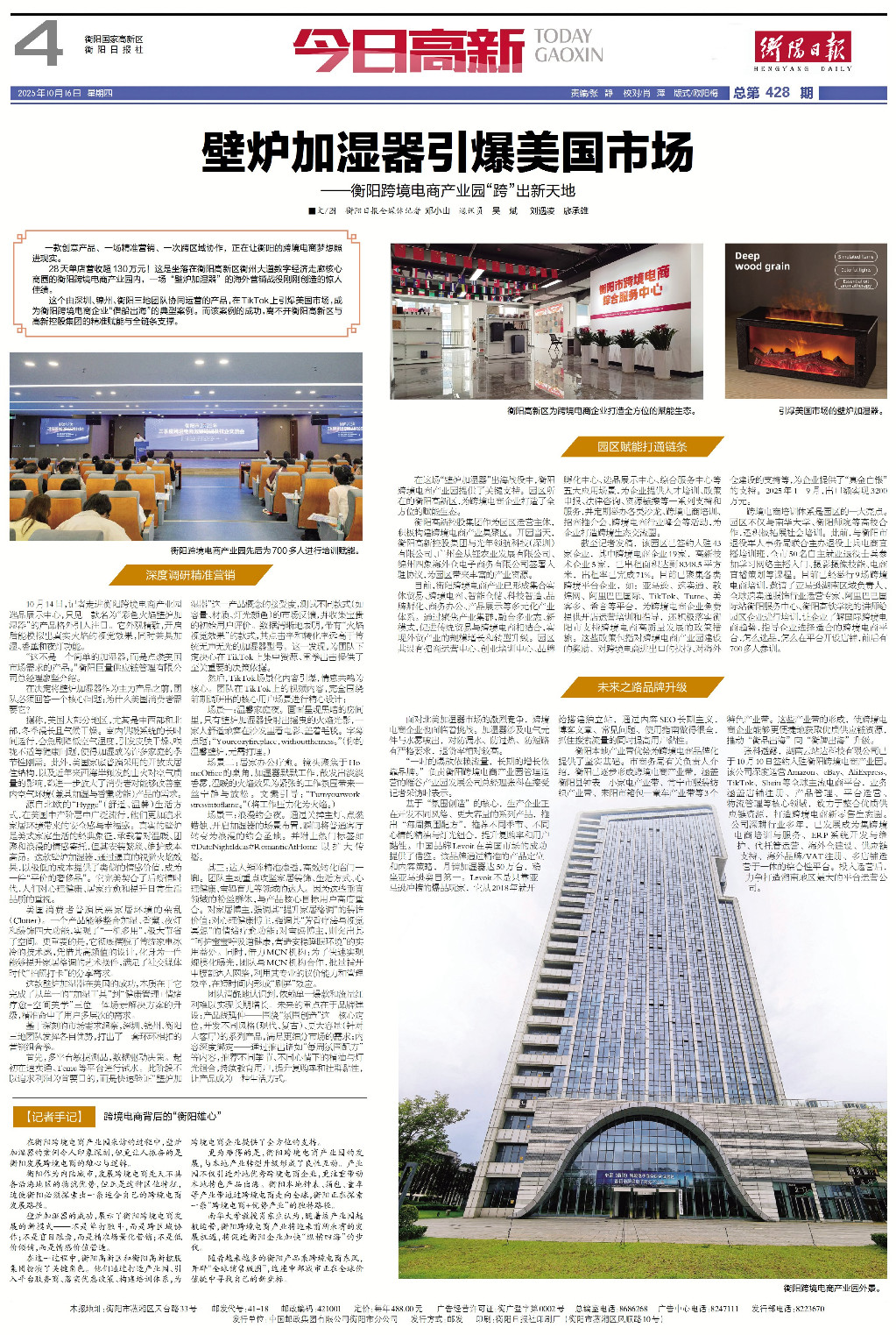 这是坐落在衡阳高新区衡州大道数字经济走廊核心商圈的衡阳跨境电商产业园内,一场“壁炉加湿器”的海外营销战役刚刚创造的惊人佳绩。▲引爆美国市场的壁炉加湿器。这个由深圳、锦州、衡阳三地团队协同运营的产品,在tiktok上引爆美国市场,成为衡阳跨境电商企业“借船出海”的典型案例。而该案例的成功,离不开衡阳高...