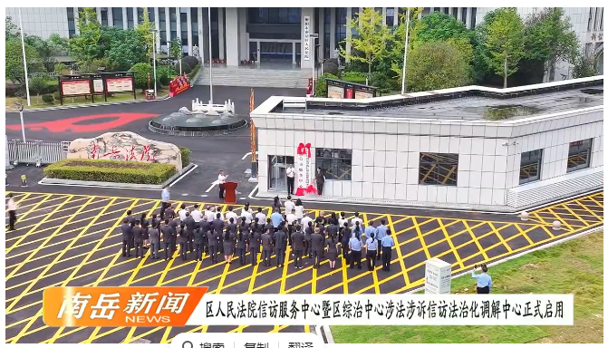 9月30日上午,区人民法院信访服务中心暨区综治中心涉法涉诉信访法治化调解中心正式启用。这是南岳区人民法院将“如我在诉”司法理念延伸至诉前与诉后环节的重要举措,旨在构建一站式社会矛盾纠纷调处平台,推动涉法涉诉信访工作进一步法治化、系统化。区委书记刘浪出席并揭牌。揭牌仪式结束后,刘浪一行走进服务中心,详...