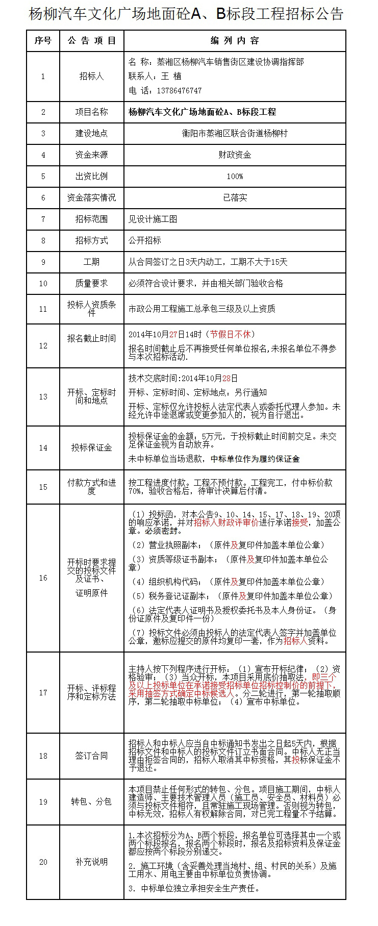 根据招标文件的规定,蒸湘区呆鹰岭镇新民村排渍站新建工程10kv配电工程于2026年2月10日举行了开标、评标,本项目采用“最低投标价法”,经评标小组评审,现将评标结果公示如下:排序中标候选人投标报价(元)第一名湖南康达电力工程建设有限责任公司346006.76第二名湖南巨轮电力建设有限公司34761...
