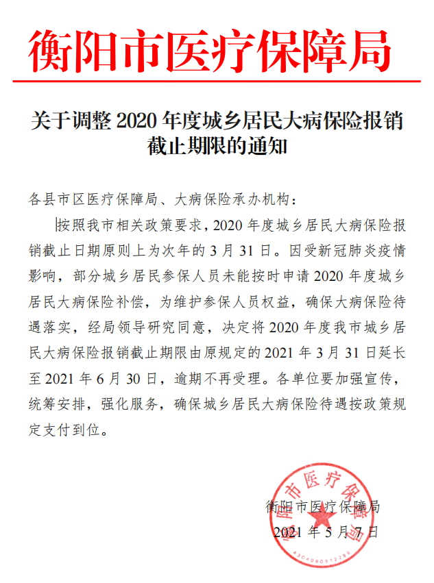 衡阳县人民政府办公室 关于做好2020年度城乡居民基本医疗保险 住院补偿结算工作的通知
