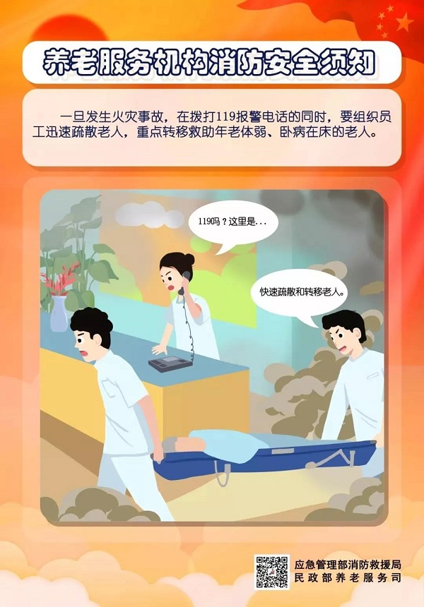 养老服务机构应当针对特殊服务对象特点,在疏散通道、安全出口和重要场所、重点部位的显著位置设置消防安全警示、提示标识,在消防设施、器材上设置醒目的标识,并标明操作使用方法。养老服务机构应当对所有员工每半年至少开展一次消防安全培训,员工新上岗、转岗前应当经过岗前消防安全培训,并每半年至少开展一次灭火和应...