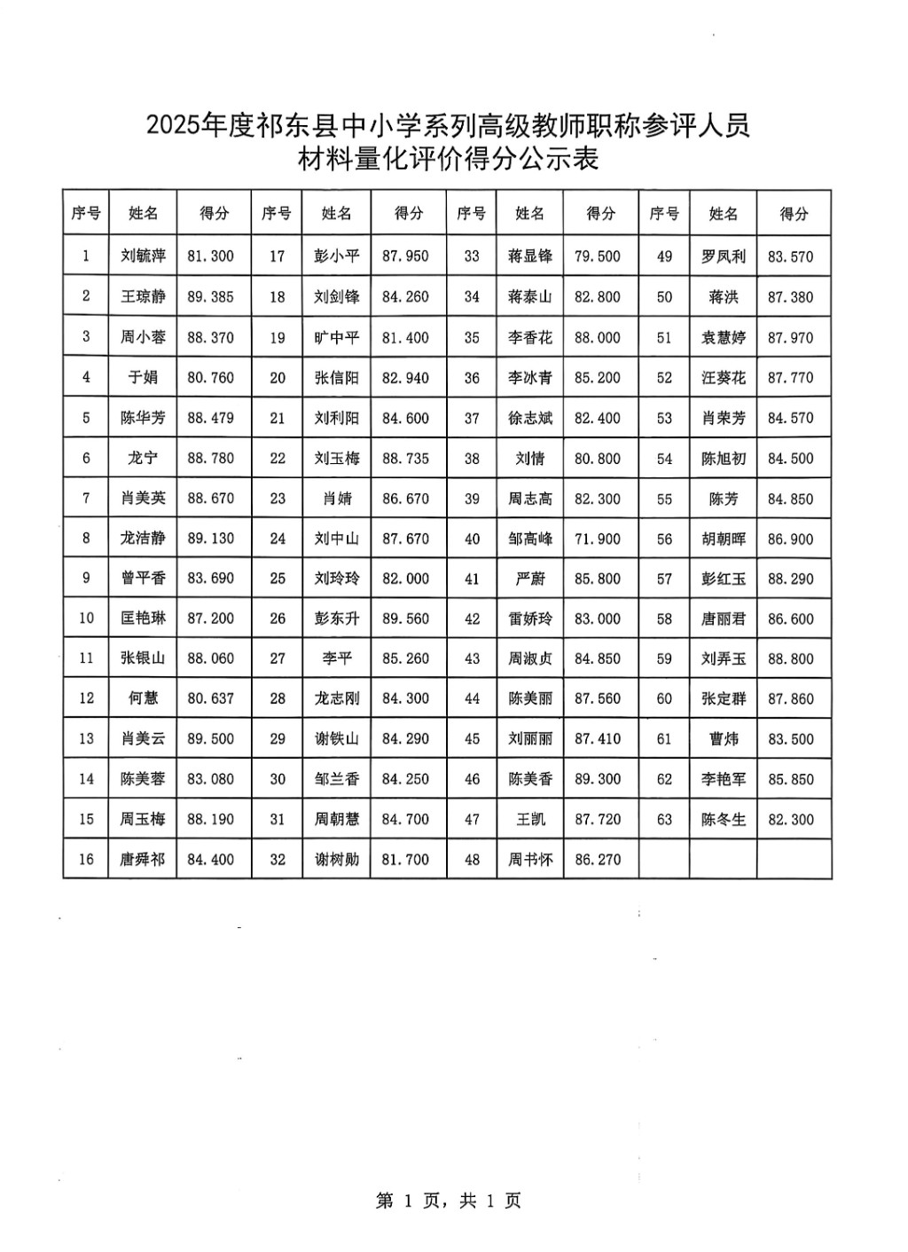 根据衡阳市教育局、人力资源和社会保障局《关于印发2025年度衡阳市中小学教师系列职称评审工作方案的通知》精神,经专家评审组评审,现将2025年度耒阳市中小学系列高级教师职称评审参评人员量化评价得分予以公示,公示时间为5个工作日(2025年10月13日-10月17日)。公示期间,如有异议,请与耒阳市人...