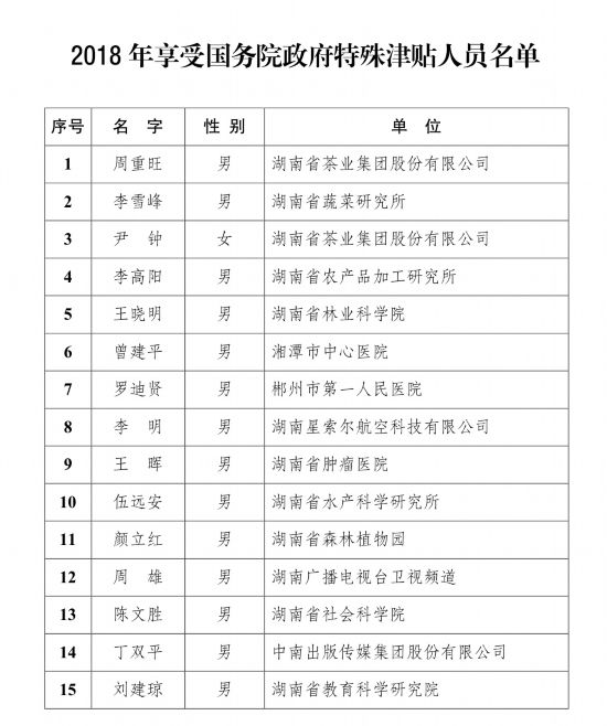 记者昨天从省人社厅获悉,日前,省人社厅印发《关于公布第四届湖南省政府特殊津贴人员名单的通知》,经专家评议,报省委人才办审核备案和省人民政府审定批准,湖南日报社金中基等100位同志被选拔为第四届湖南省政府特殊津贴人员,享受湖南省政府特殊津贴人员每人一次性发放特殊津贴人民币10000元,由省财政专项列支...