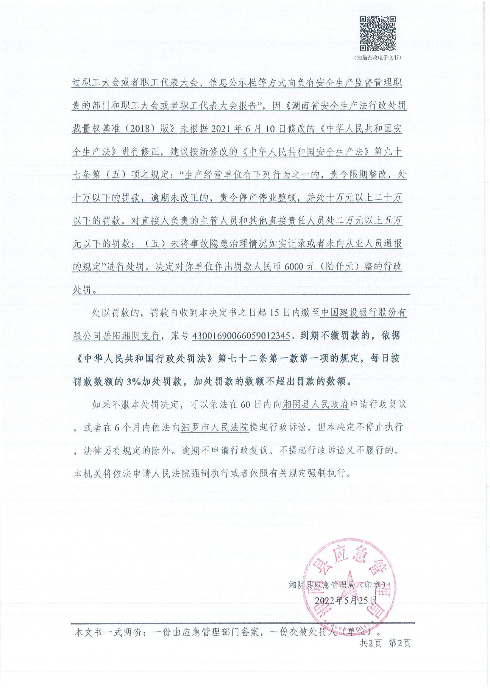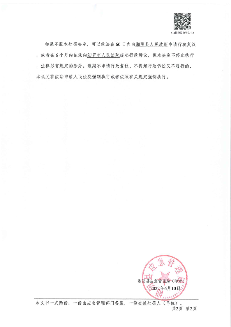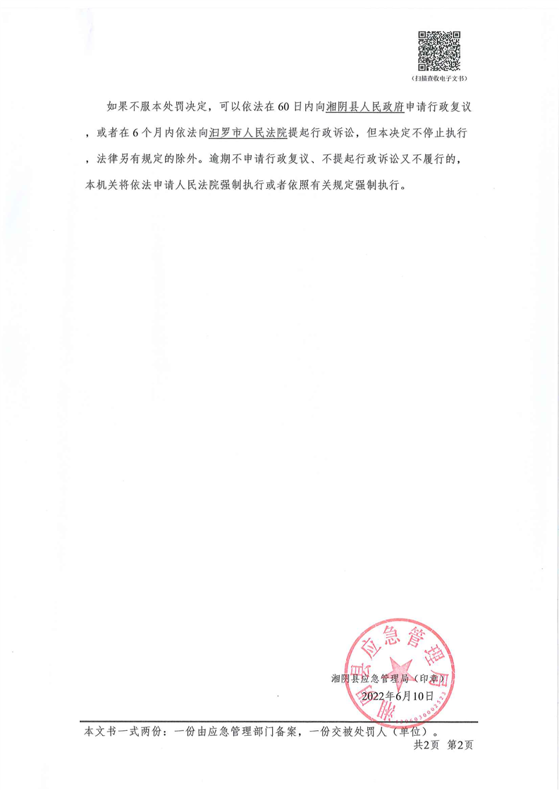 序号被处罚单位/个人违法事实处罚依据处罚内容罚款金额(万元)没收违法所得没收非法财物的金额(万元)处罚决定日期1湘阴县樟树二六碑加油站2022年11月3日在对油站进行现场检查时发现关闭了直接关系生产安全的监控设备设施(液位监控管理系统)《中华人民共和国安全生产法》第三十六条第三款;
