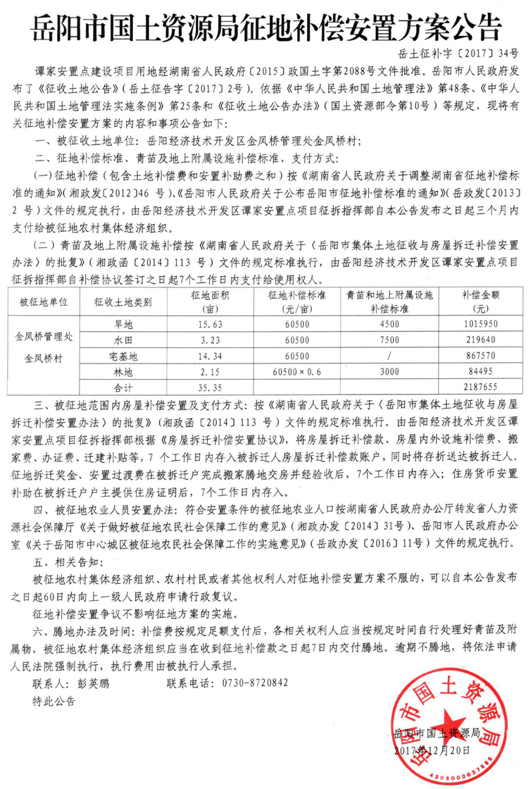 征地面积1.4372公顷。二、土地补偿费、安置补偿费标准:集体建设用地按岳阳楼区ⅰ区5.0490万元/亩补偿。三、青苗补偿费及房屋补偿标准(依据所办理补偿登记的数据按岳政发〔2009〕16号文件标准补偿)。四、青苗补偿费及地上建(构)筑物补偿费直接支付给个人,土地补偿费及安置补助费采用转账的方式付给...