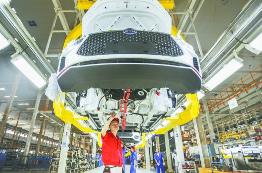 8月14日,长沙市比亚迪汽车有限公司,工人在装配新一代智感电动跨界车。目前,湖南拥有长沙比亚迪、长沙众泰、中车时代电动、长丰集团等13家新能源汽车生产企业和全国产品最齐全的电池材料产业集群,初步形成了新能源汽车完整产业链。今年1月至5月,全省新能源汽车产量同比增长622.13%。