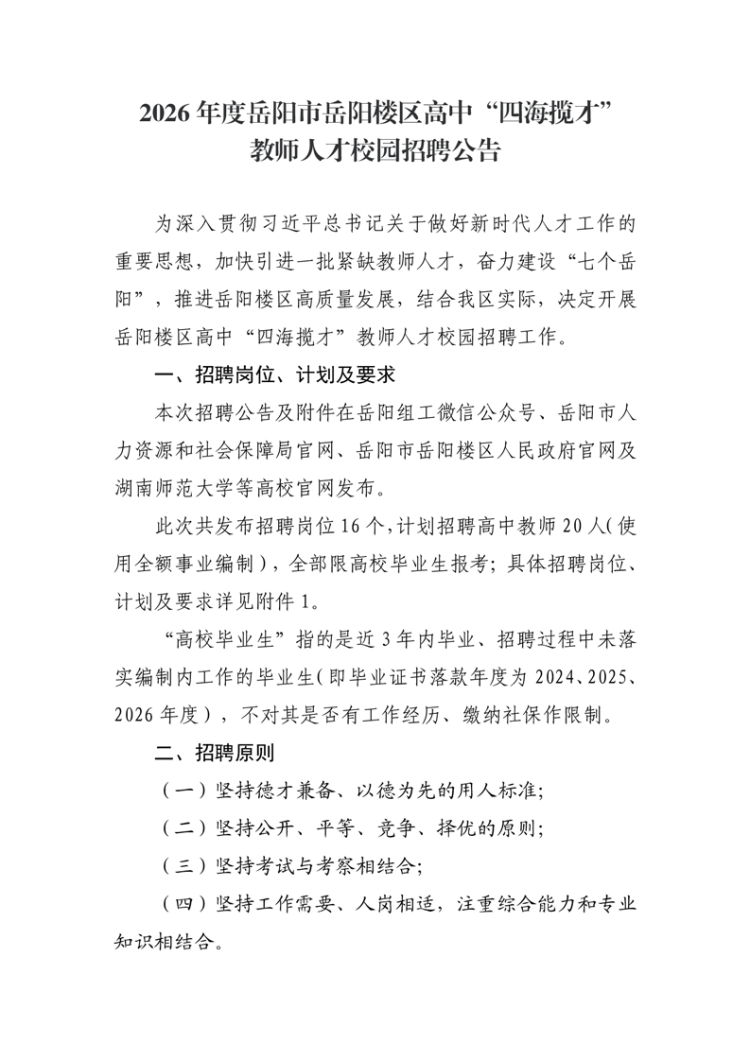 二、招聘岗位、计划及要求本公告及附件在平江县人民政府官网、平江县卫生健康局官网及相关医院网站、微信公众号发布。此次县直公立医院共发布招聘岗位35个(招聘岗位计划数49个,使用事业编制),其中限高校毕业生报考的招聘岗位7个(招聘岗位计划数7个),所有招聘岗位均为专业技术岗位。具体招聘岗位、计划及要求见...