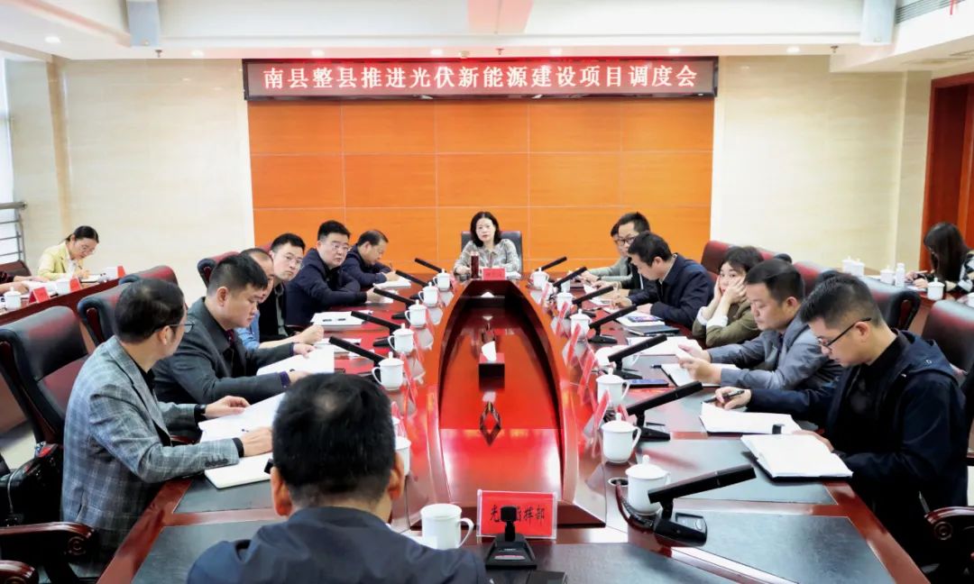 会议现场会议听取了整县推进光伏新能源建设项目情况。南县整县推进光伏新能源建设项目分整县屋顶分布式光伏发电和水面集中式光伏发电项目两部分进行,合计装机容量可达1287兆瓦,总投资约50亿元。目前我县将县经开区一期工程及南洲村居民屋顶开发工程作为全县光伏开发先行先试项目强力推进。