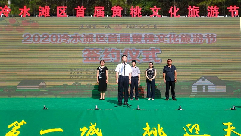 • 7月26日,冷水滩区首届黄桃文化旅游节在黄阳司镇思农业黄桃基地举行,通过艺表演、邀约采摘、越野赛车等活动,吸引了千余名市民前往采摘玩。永州市文化旅游广电体育局党组书记、局长蒋井泉宣布活动开幕,副区长汤丽娟出席并讲话。永州市文化旅游广电体育局党组书记、局长蒋井泉宣布冷水滩区首届黄桃文化旅游节开幕...