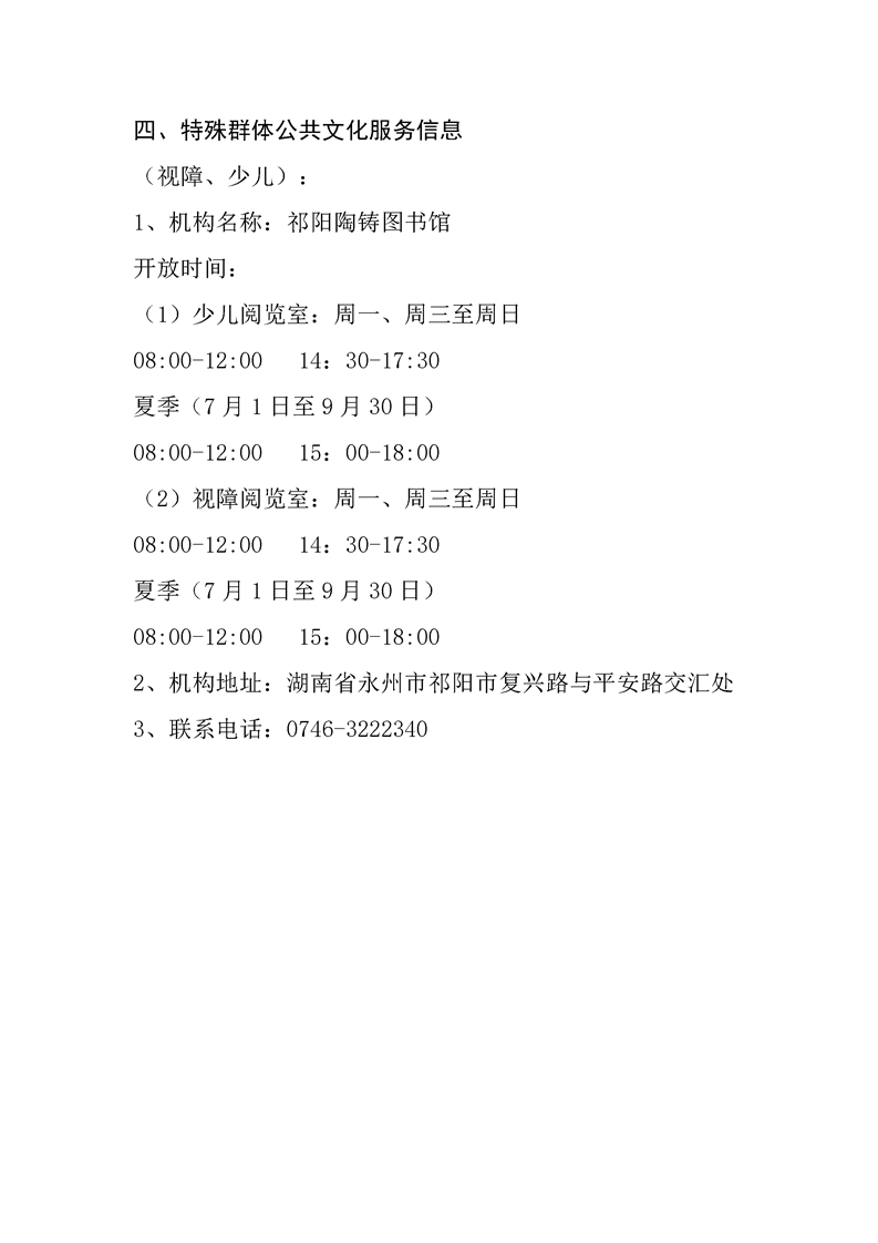 2026年公共文化机构免费开放信息 机构名称:祁阳陶铸图书馆机构地址:湖南省永州市祁阳市复兴路与平安路交汇处联系电话:0746-3222340