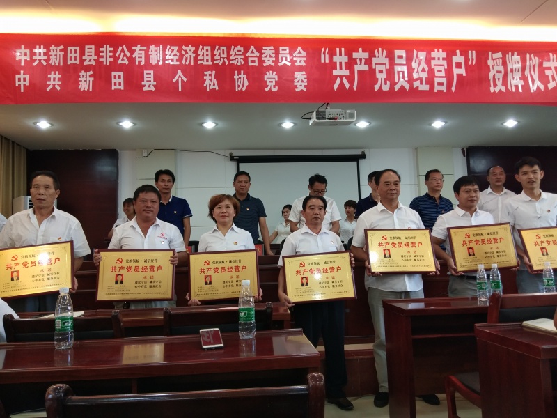 8月22日,新田县非公经济综合党委在市场监督管理局六楼会议室对全县70余家“共产党员经营户”进行了授牌。会上,宣读了共产党员经营户名单并为共产党员经营户进行了授牌。共产党员经营户代表做了经验交流并表示要珍惜荣誉,带头诚信经营,积极服务社会,为新田县“小个专”经济发展贡献力量,为党旗增辉。