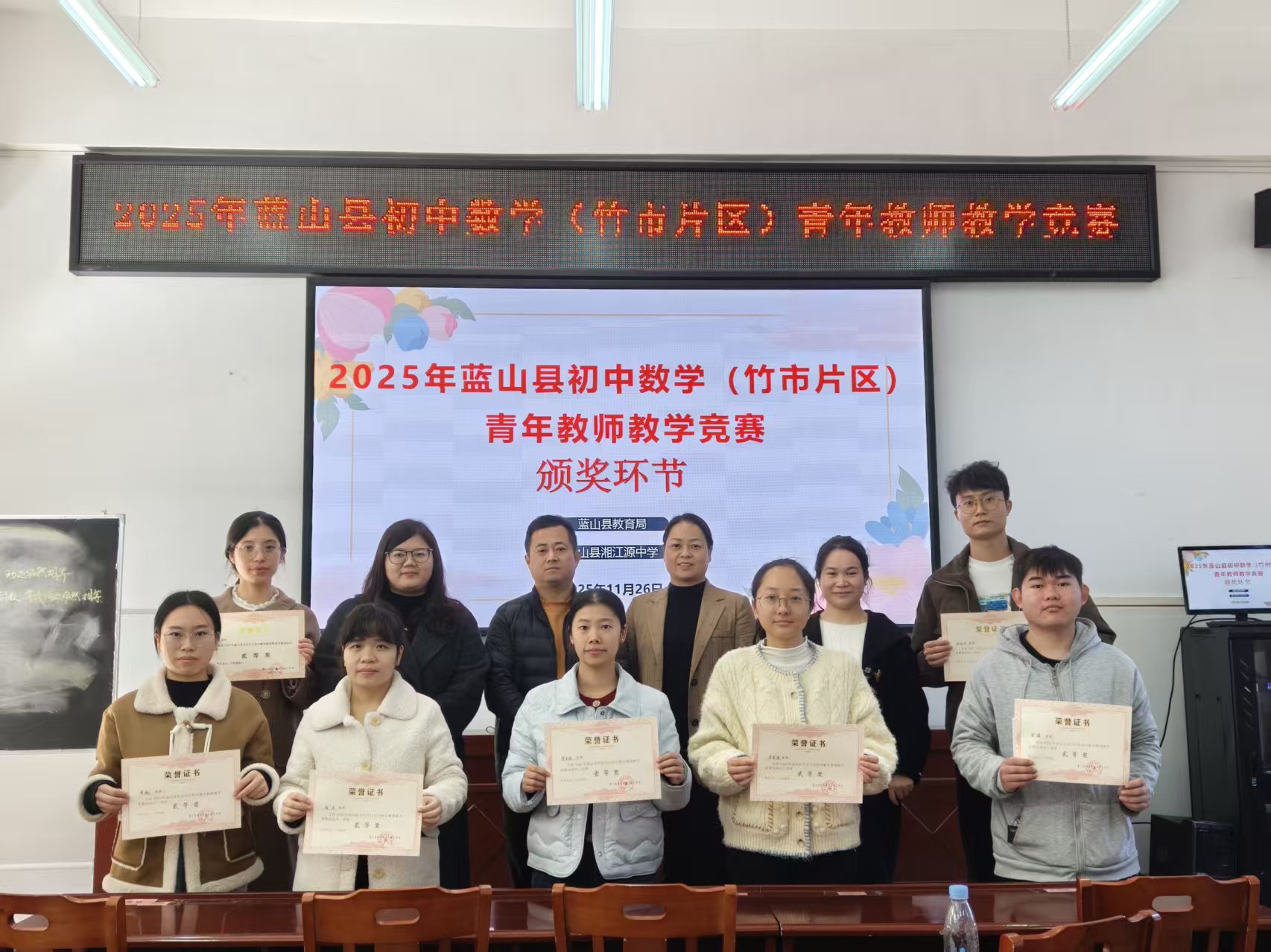 蓝山县初中数学(竹市片区)青年教师教学竞赛圆满完成(通讯员 邓丽珍 杨晋东曾文彦 成海璐)11月26日上午,2025年初中数学(竹市片区)青年教师教学竞赛在湘江源中学成功举办。来自竹市片区初中学校的7名青年教师同台竞技,以赛促研,共探数学教学新思路。本次竞赛分为教学设计...