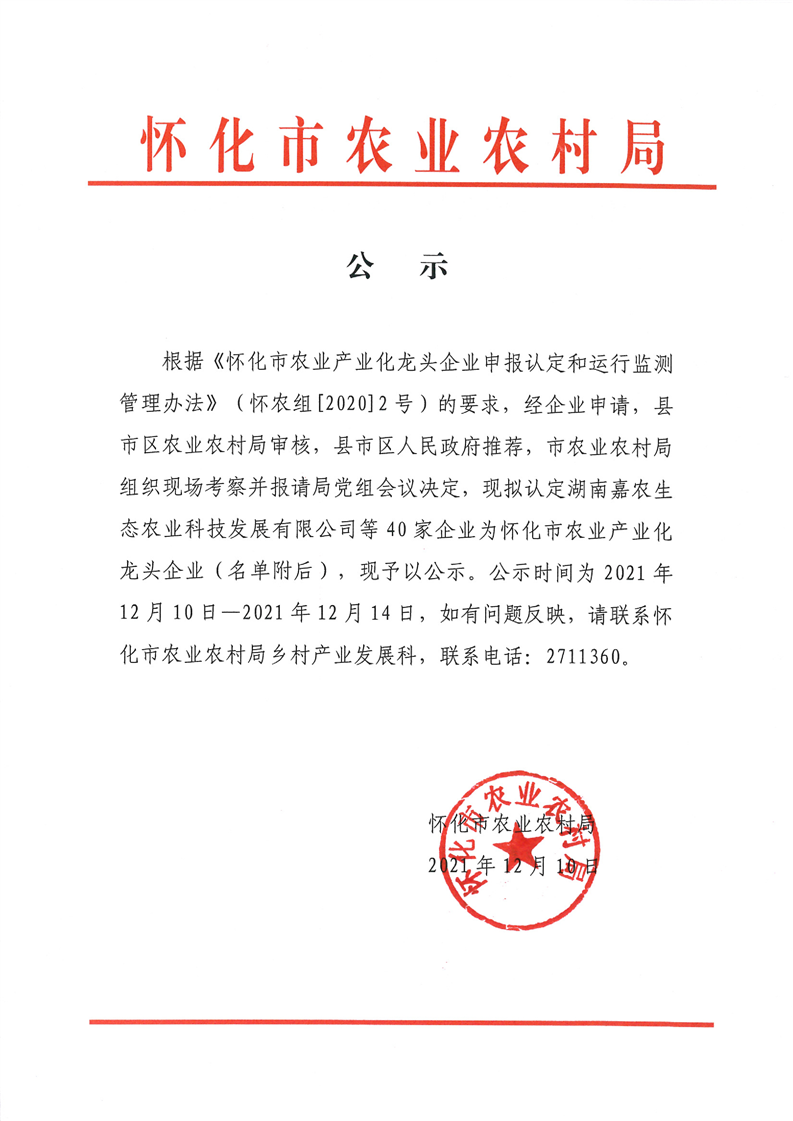 关于公布运行监测合格和递补新增农业产业化市级龙头企业名单的通知