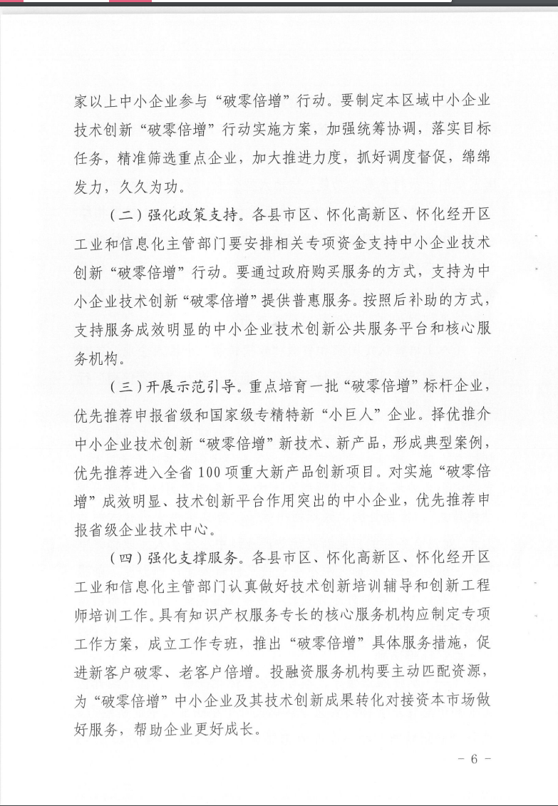 2020年,怀化市将中小企业技术创新“破零倍增”工作,作为发展高新技术产业的基础性工作来抓,不断强化中小企业技术创新主体地位,促进创新资源向中小企业聚集,不断提升中小企业技术创新能力和核心竞争力,加快培训一批“专精特新”中小企业,力争新认定高新技术企业80家以上,实现45家以上中小企业参与“破零倍增...