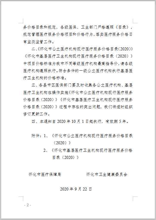 怀化市医疗保障局关于实施部分医疗服务价格调整的通知
