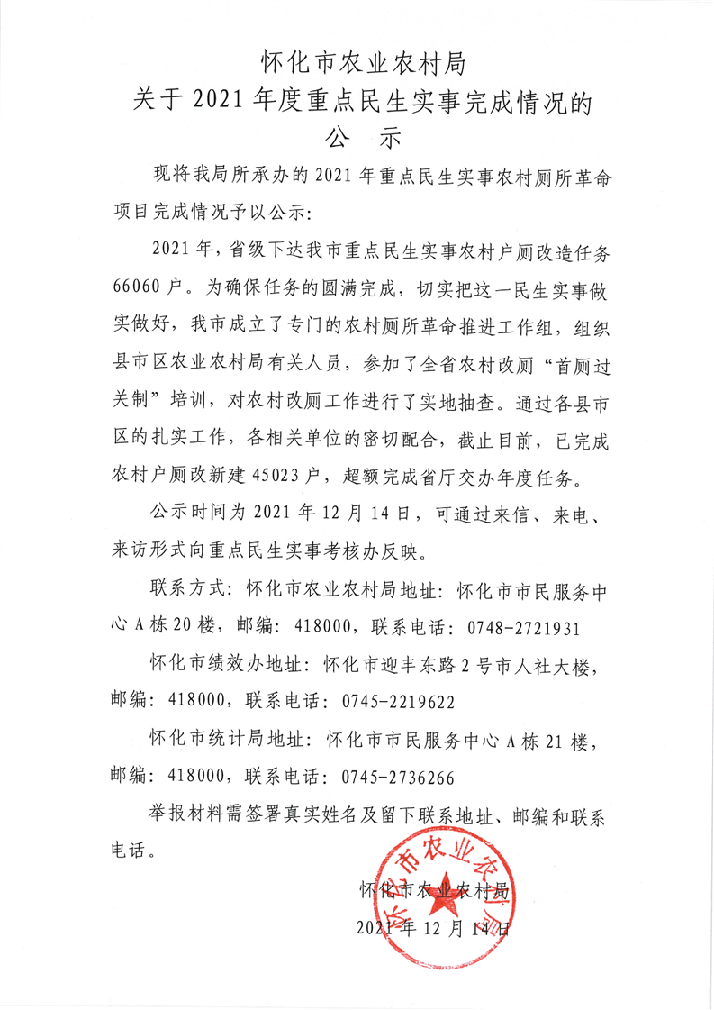 关于对怀化市2016年度重点民生实事美丽乡村示范村完成情况的公示