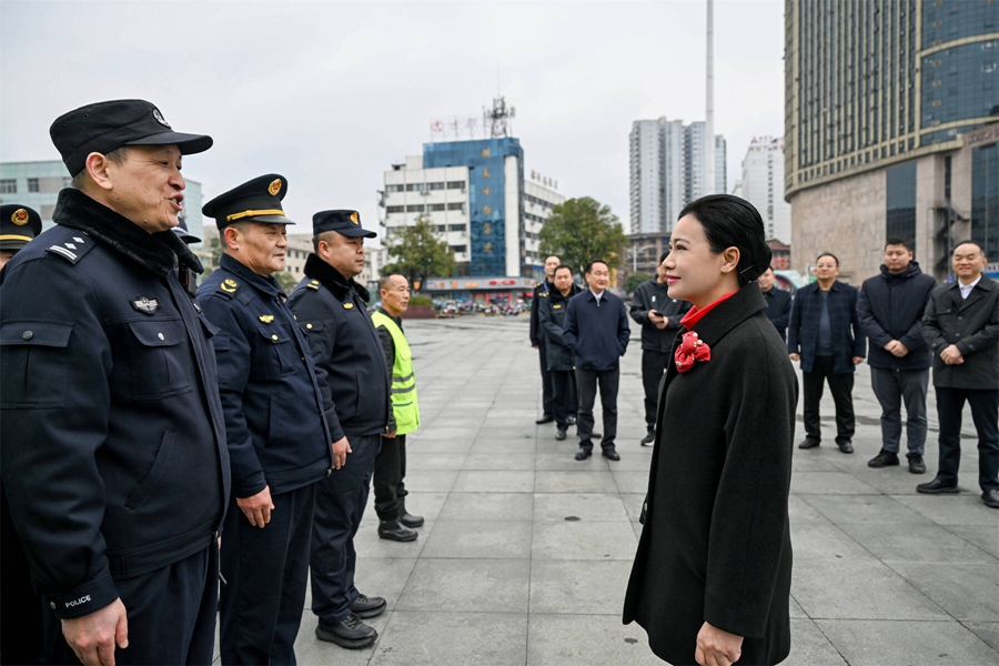 韦朝晖走访慰问春节期间一线值守工作人员,督导检查安全生产、生态环保等工作扎实细致做好服务保障确保群众平安欢乐祥和过节(2月17日,农历正月初一,市委副书记、市长韦朝晖在主城区和怀化高新区走访慰问春节期间坚守一线的工作人员。图为韦朝晖在怀化火车站广场执勤点看望慰问执勤民警、城管执法队员和环卫工人。怀化...
