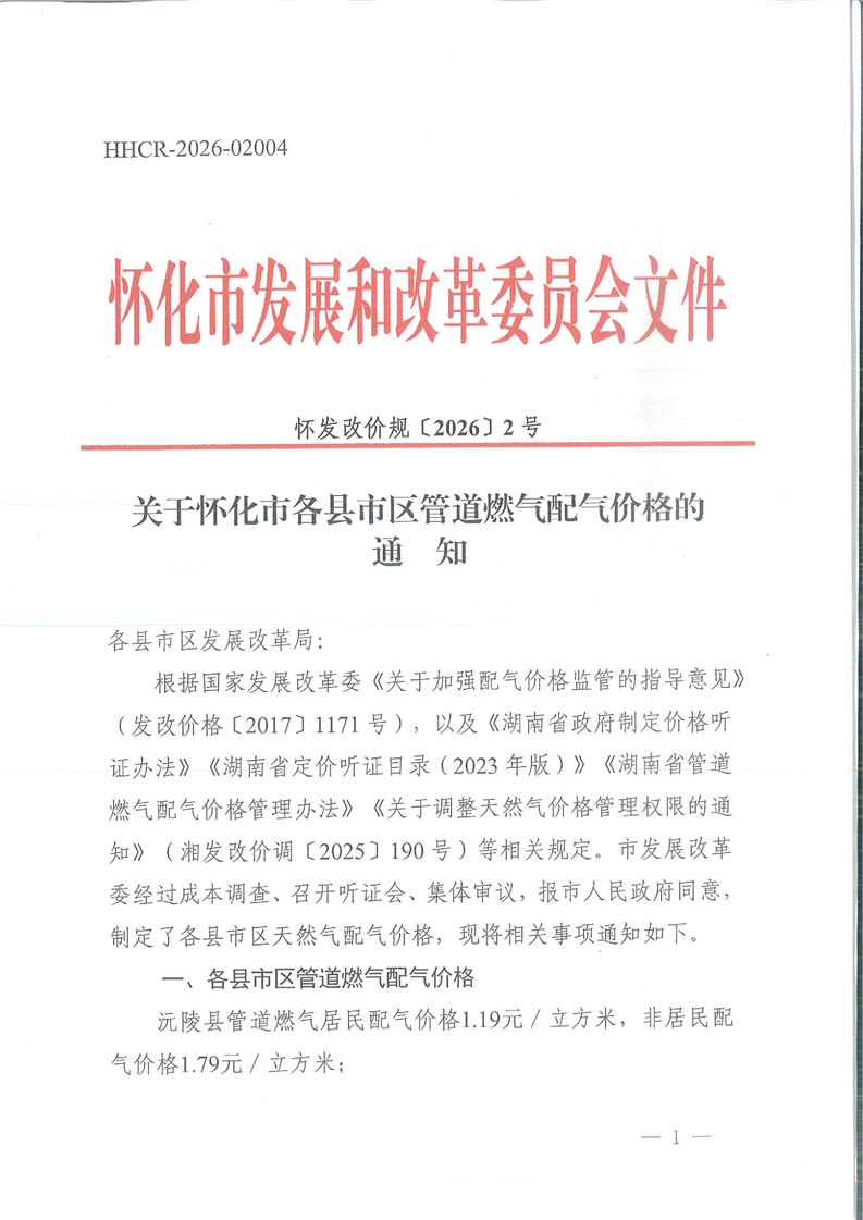 通道县管道燃气居民配气价格1.06元/立方米,非居民配气价格1.56元/立方米。二、有关要求各县市区发展改革局根据核定的配气价格,同步制定本县、市内管道燃气终端销售价格,居民阶梯价格和气量按照《湖南省居民生活用天然气阶梯价格实施办法》执行。三、执行时间本通知自公布之日起执行,有效期5年。通知中未尽事...