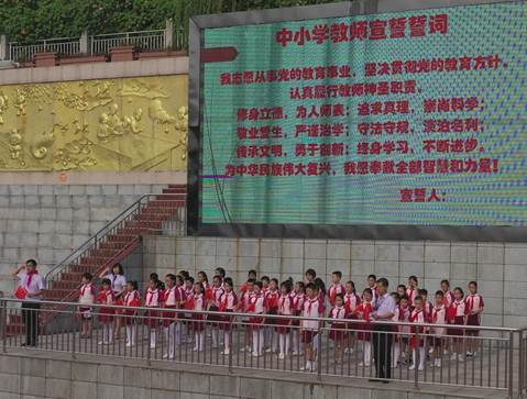 9月9日上午怀铁一小全体师生齐聚田径场,隆重举行2019年秋季开学典礼。当天,怀铁一小校园内红旗飘飘,歌声嘹亮。学校围绕“祝福祖国、繁荣昌盛”这一主题,将开学典礼与开学第一课相融合,为大家奉上了精彩的开学第一课。当《我和我的祖国》的音乐响起,全体师生情不自禁挥舞着手中鲜艳的五星红旗齐声歌唱,并用手翻...