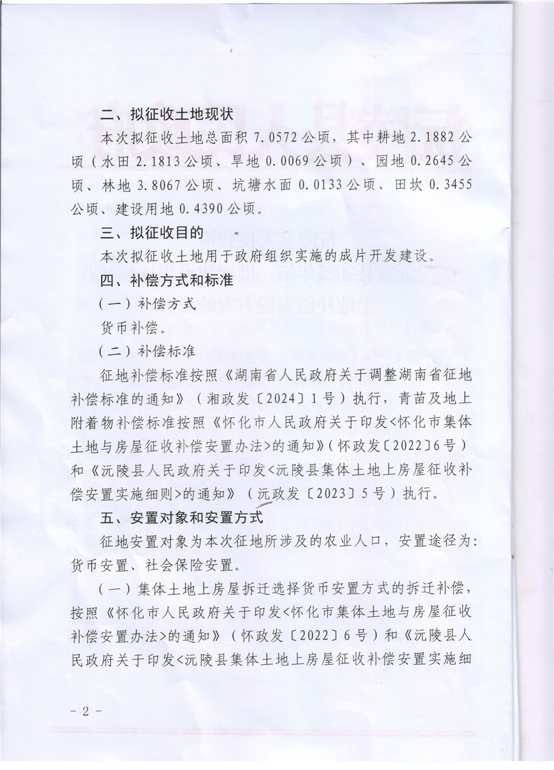 沅陵县人民政府关于沅陵县2024年第十二批次建设用地土地征收的公告