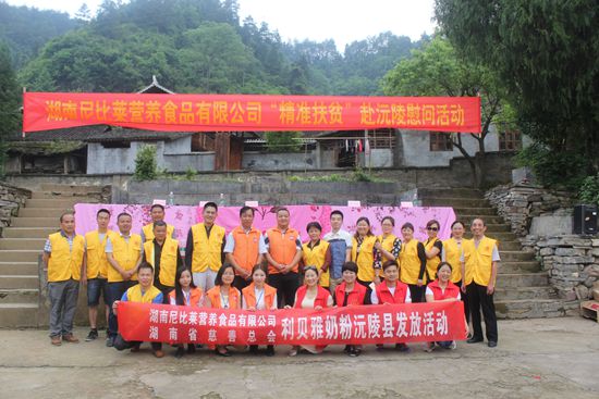 2016年5月6日,湖南尼比莱营养食品有限公司在借母溪乡举行“精准扶贫”慈善物资发放仪式,对借母溪乡60多名贫困学生和贫困户进行了精准捐助。发放仪式由县民政局局长舒序刚主持,仪式上总经理许湘、县慈善会会长宋联君、借母溪乡分管民政领导林卫出席并讲话。