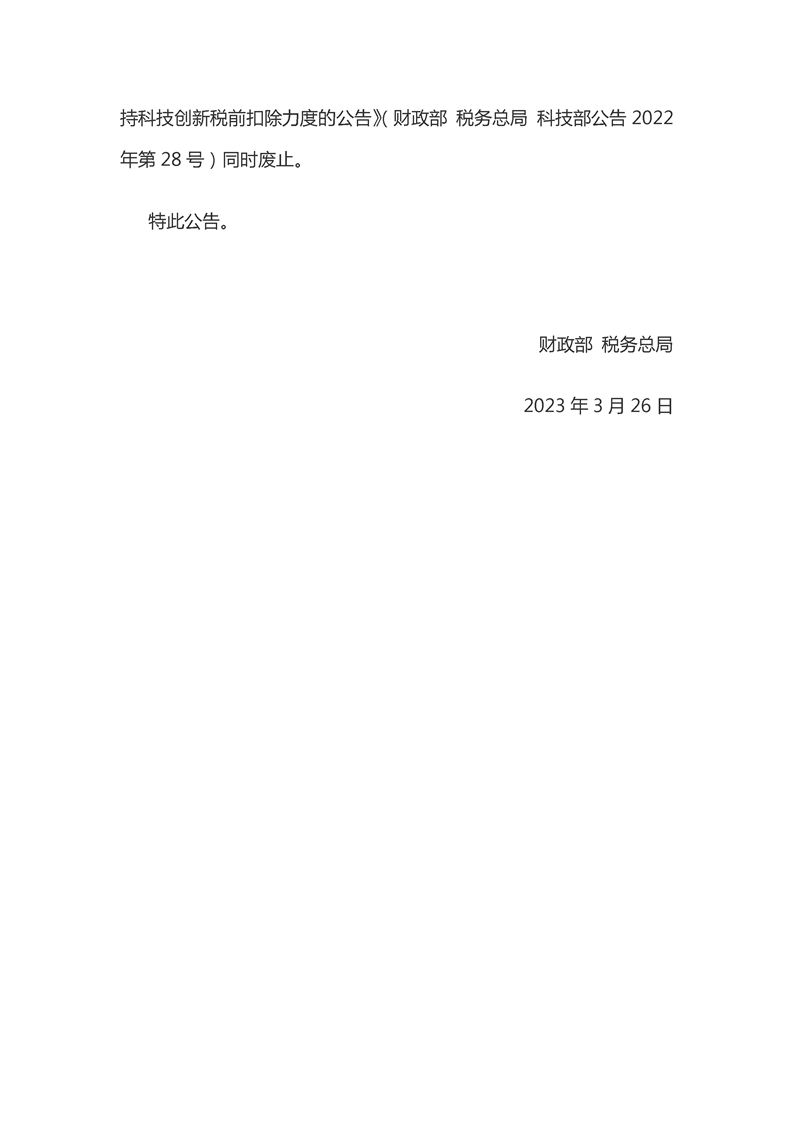 企业享受研发费用税前加计扣除政策的相关政策口径和管理,按照《财政部国家税务总局科技部关于完善研究开发费用税前加计扣除政策的通知》(财税〔2015〕119号)、《财政部税务总局科技部关于企业委托境外研究开发费用税前加计扣除有关政策问题的通知》(财税〔2018〕64号)等文件相关规定执行。特此公告。