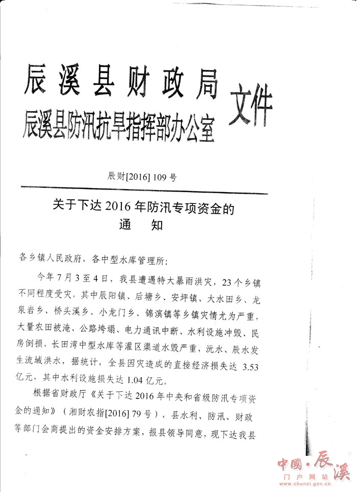 辰溪县人民政府关于印发《辰溪县财政专项资金管理暂行办法》的通知