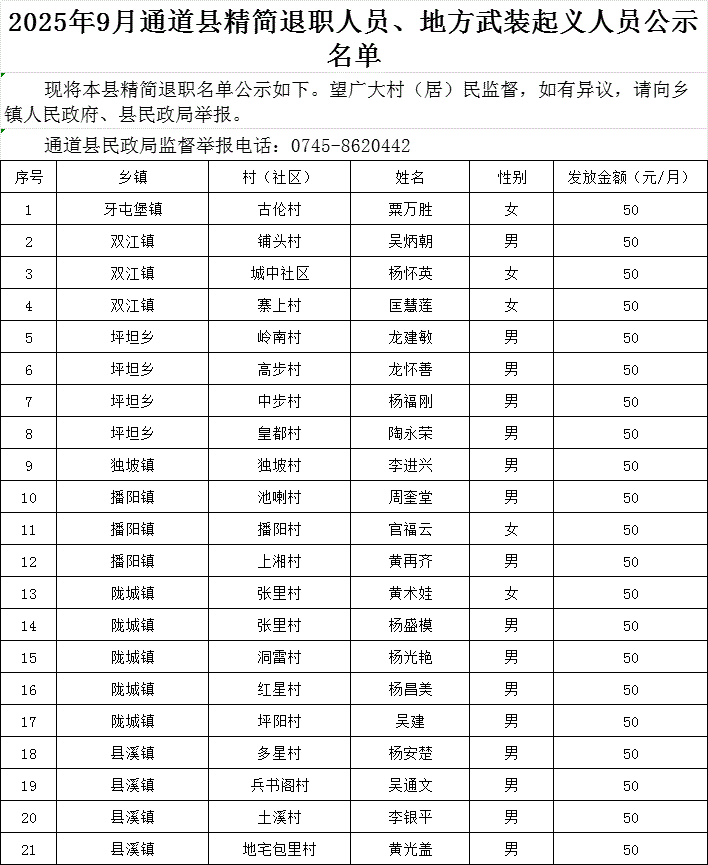 现将中方县2025年《就业技能培训》第二期(7班)学员补贴花名册予以公示。如有异议,可通过来电、来信、来访等形式向县人社局反映。 监督电话:0745-2811686。 县人社局地址:中方县生态城玫瑰路6号。附...