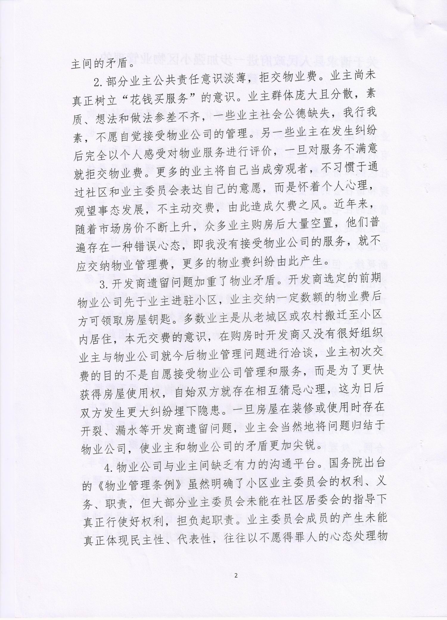 类似现象的物业公司还有会同县瀚巍物业服务有限公司等。造成如此高的欠费率的原因是:一是90%业主的法律法规意识淡薄,缺乏履行义务的责任感,不想交费。二是2%的个别业主以房屋质量存在一点小瑕疵,免费停在公共区的车被刮,自来水压力太低,禁止做突出建筑外墙的雨蓬或防盗窗等非物业管理原因拒交物业费。