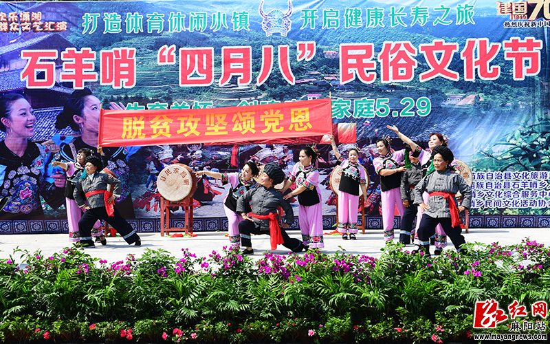 “四月八”源于苗族祭祀活动,是苗族的传统节日,又称“亚努节”。在这天,苗族人祭天地、祭祖先、祭英雄、祭神灵,同时举行聚会,载歌载舞,庆祝节日。近年来,石羊哨乡致力于将“四月八”打造成全乡的品牌文艺活动,不断丰富当地群众的精神文化生活,每年均举办民俗文化节,到今年该活动已举办了10届。