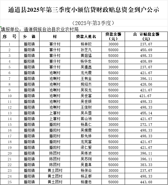 详细见附件:【2025年第3季度贴息公示】农业农村局县级