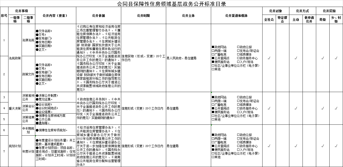 完整目录详见附件:会同县保障性住房领域基层政务公开标准目录