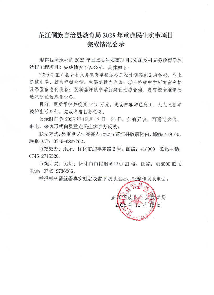 关于2024年粮油单产提升项目补贴的公示 依据《芷江侗族自治县2024年开展规模种植主体粮油单产提升行动项目实施方案》的通知,种植户自主申报,经农业农村局核实,拟对验收合格户进行奖补,现予以公示,公示期:2025年12月1日至12月7日。