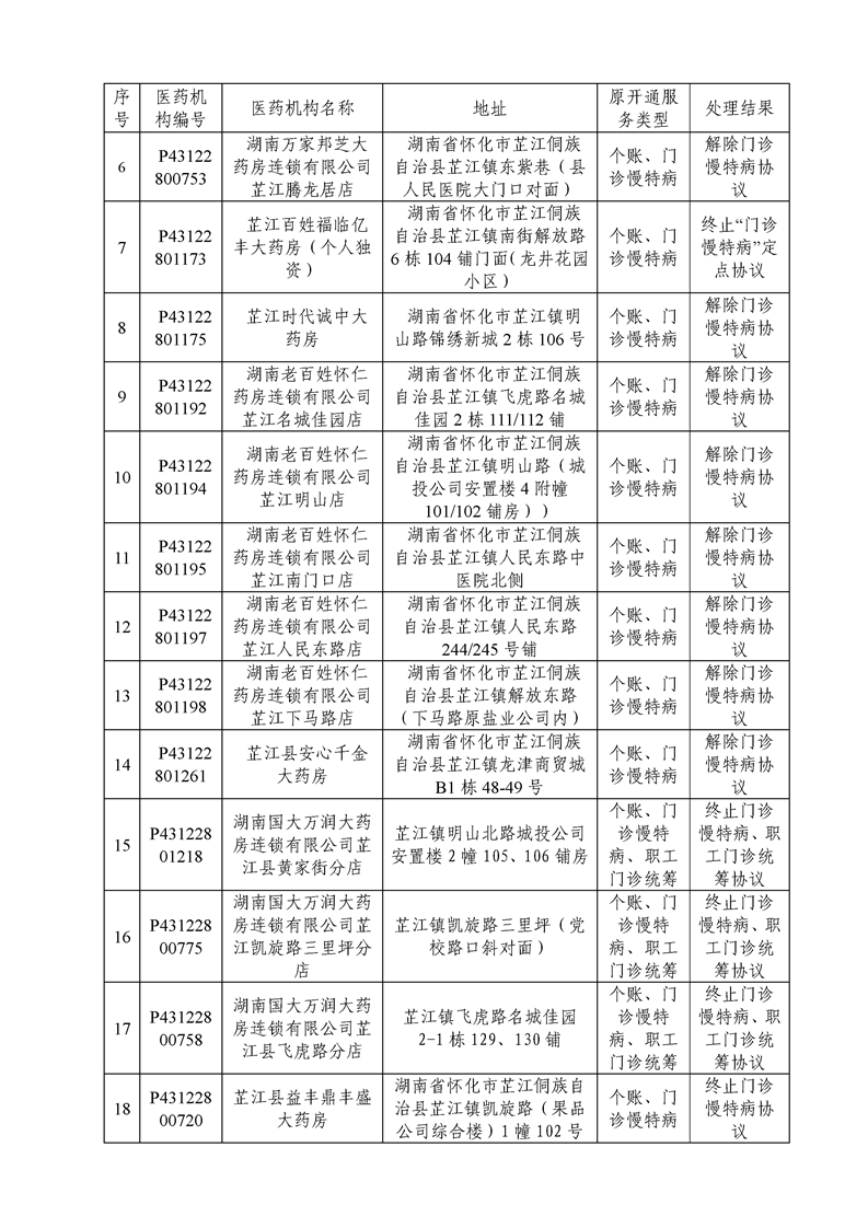 芷江侗族自治县医疗保障事务中心关于终止部分定点医疗机构服务协议的通告根据《怀化市定点医疗机构医疗保障服务协议(2025年)》第八十八条第三款“乙方主动提出解除医保协议且甲方同意的”协议终止规定,终止芷江侗族自治县芷江镇合心村毛瑞田卫生室、芷江侗族自治县土桥镇杨公庙村田明菊卫生室2家芷江侗族自治县定点...