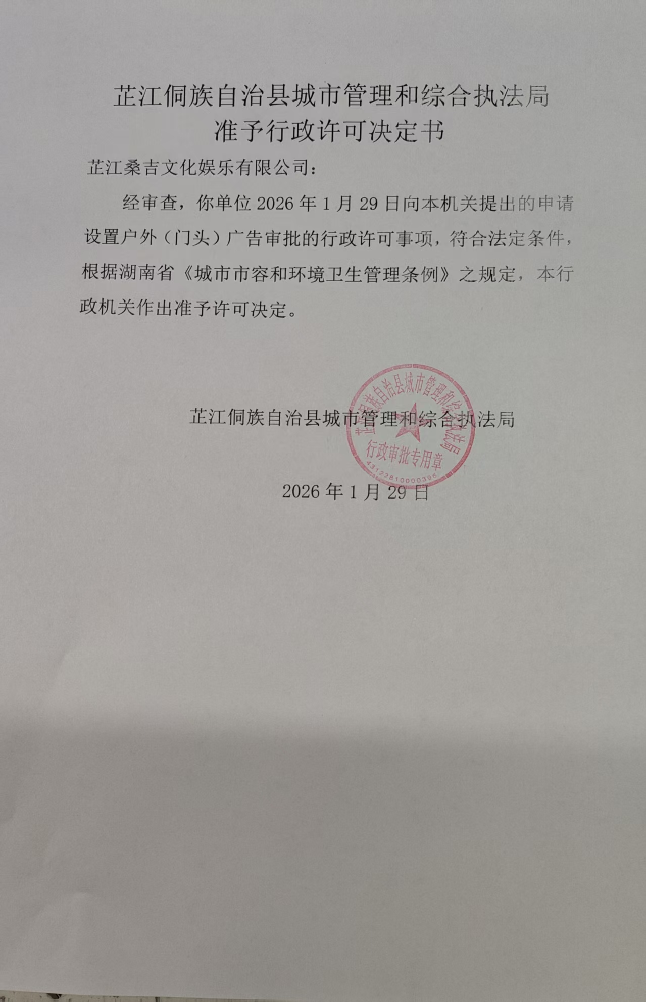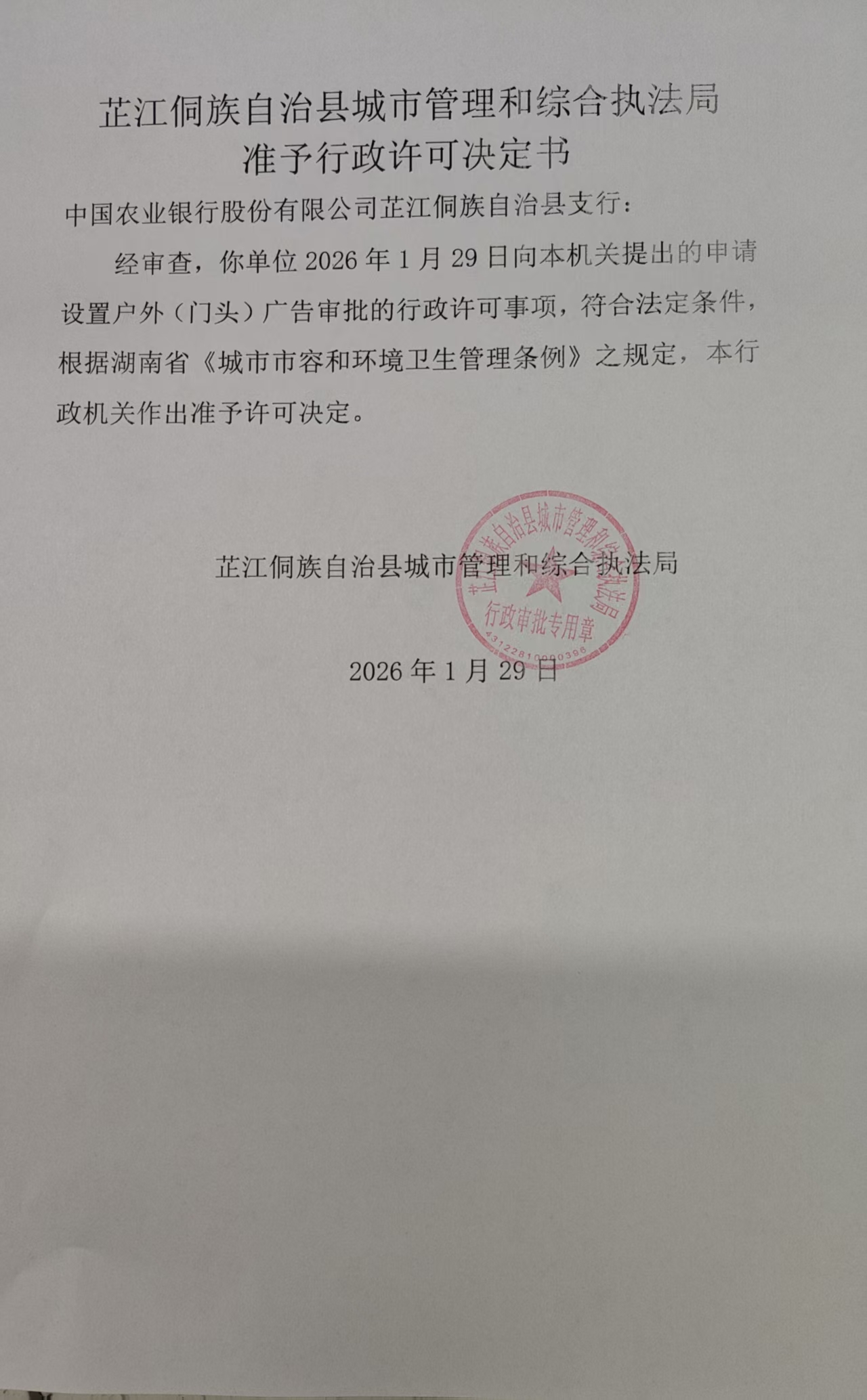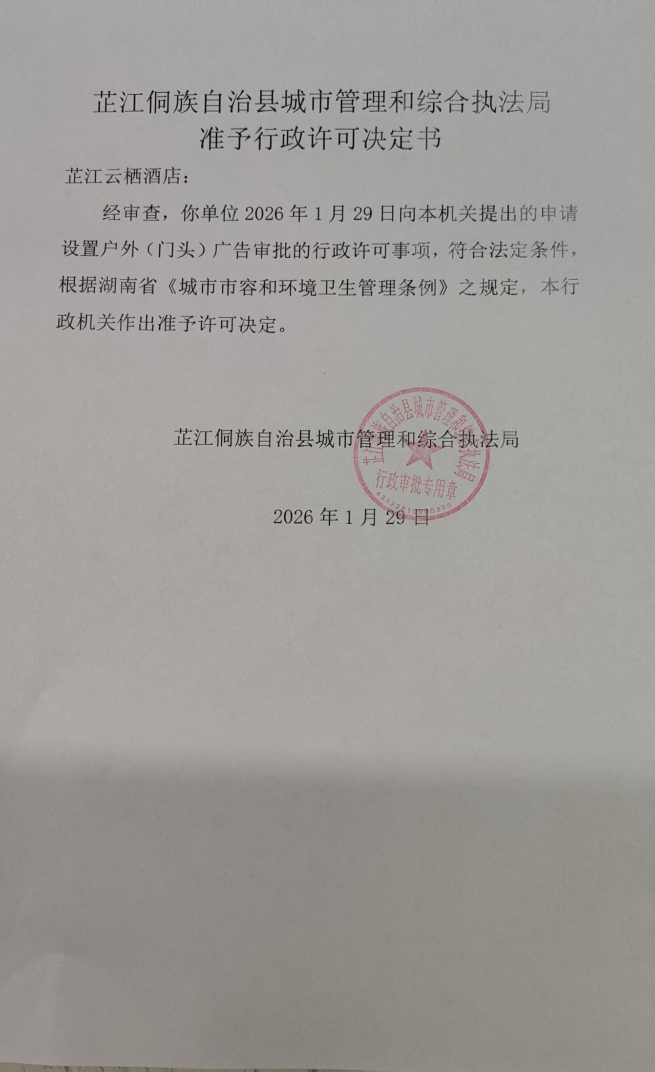芷江侗族自治县城市管理和综合执法局行政处罚决定书芷城执罚决字〔2026〕1号当事人:杨**,性别:男,民族:侗族,出生年月:1966年*月*日,身份证号码:4330271966****161*,住址:湖南省芷江侗族自治县芷江镇***村四组1号。当事人为未取得规划许可的农村村民胥凌成、郭发元、李静、李...