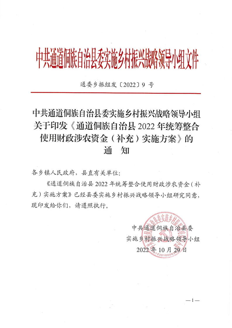 关于印发《通道侗族自治县2022年统筹整合使用财政涉农资金实施方案》的通知